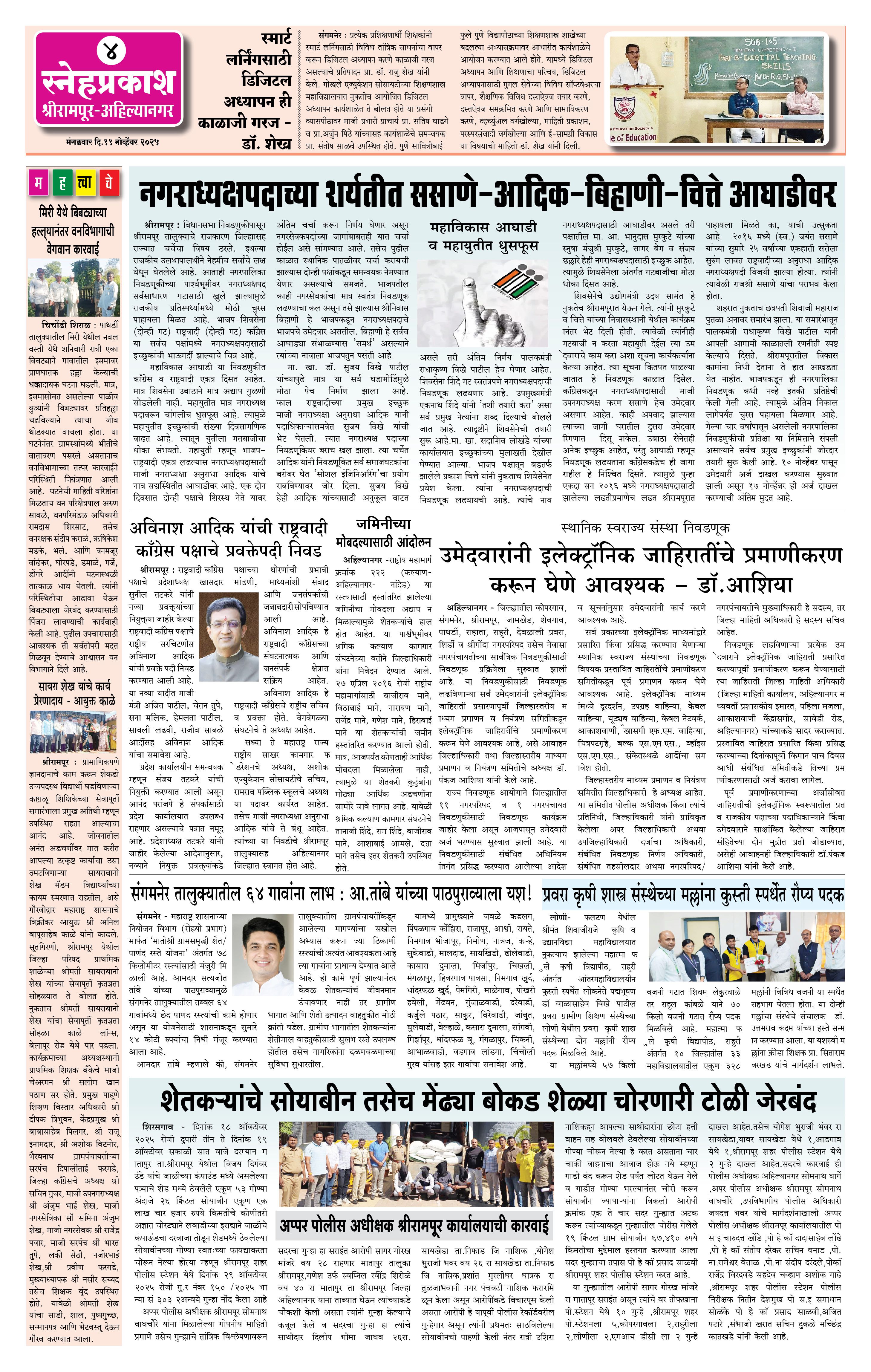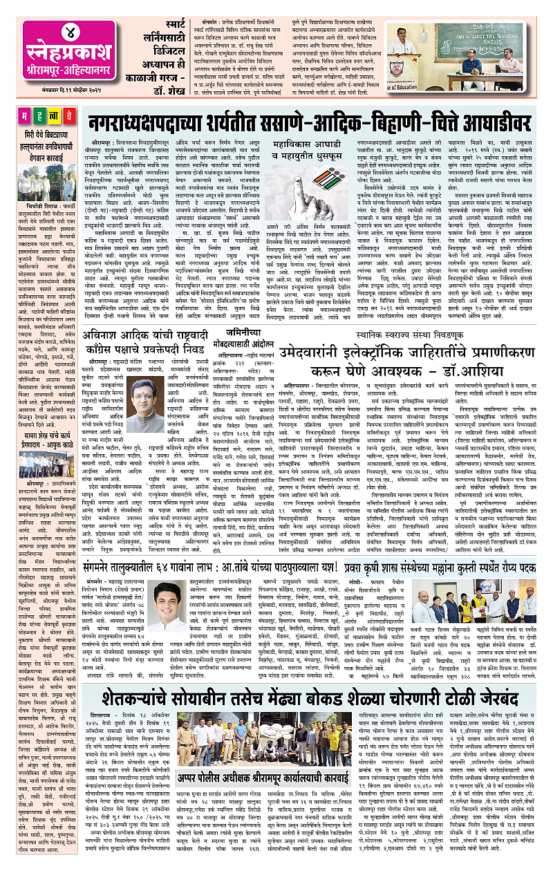 Daily Snehprakash (Marathi) Page: 4 November 11, 2025 Ahilyanagar-Pune-Nashik-shrirampur maharashtra 1 2 3 4 Page 1Page 2Page 3Page 4 × Daily Snehprakash (Marathi) 1-4 colour1-4 colour21-4 colour31-4 colour4 << First << 4 >> Last >> Page no 1Page no 2Page no 3Page no 4