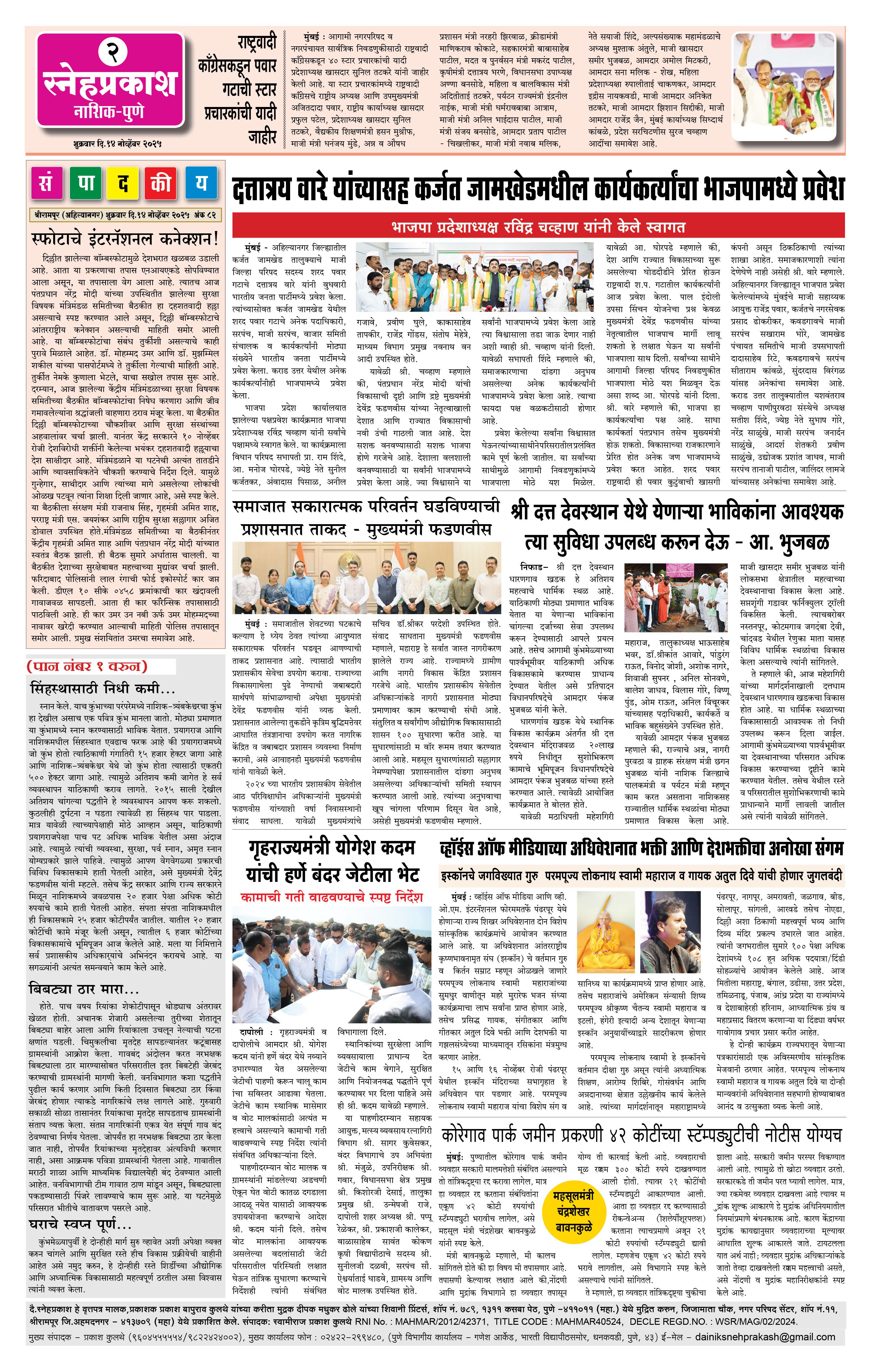 Daily Snehprakash (Marathi) Page: 2 November 14, 2025 Ahilyanagar-Pune-Nashik-shrirampur maharashtra 1 2 3 4 Page 1Page 2Page 3Page 4 × Daily Snehprakash (Marathi) 1-41-421-431-44 << First << 2 >> Last >> Page no 1Page no 2Page no 3Page no 4