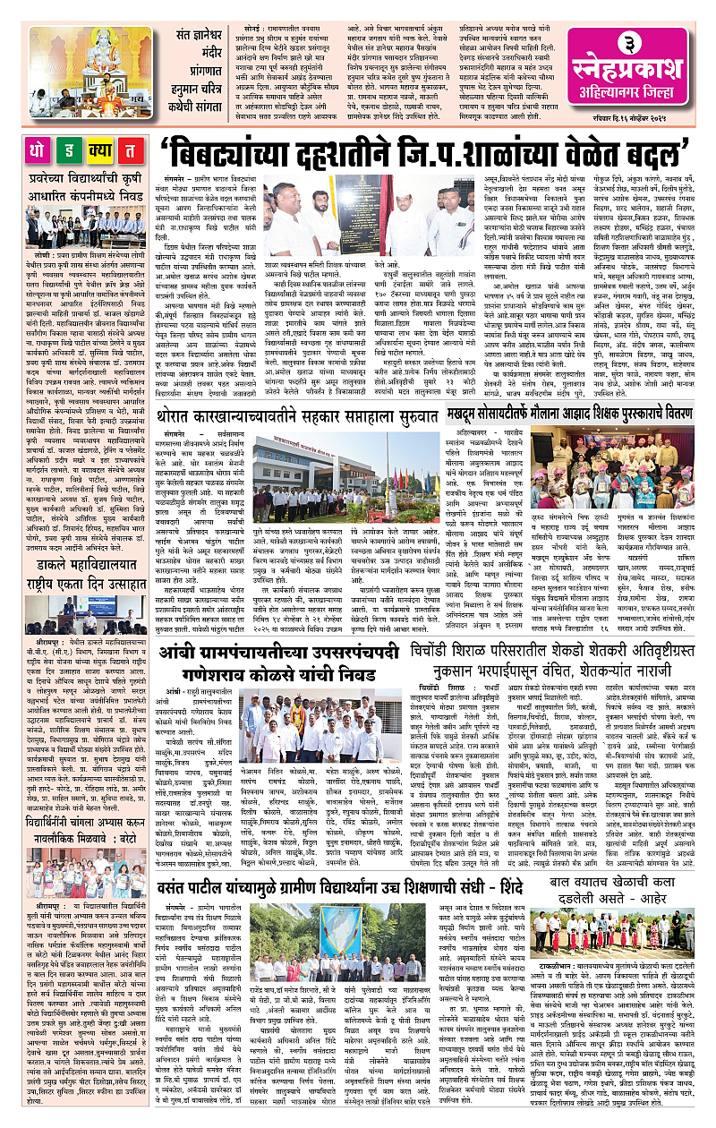 Daily Snehprakash (Marathi) Page: 3 November 16, 2025 Ahilyanagar-Pune-Nashik-shrirampur maharashtra 1 2 3 4 Page 1Page 2Page 3Page 4 × Daily Snehprakash (Marathi) 1-41-421-431-44 << First << 3 >> Last >> Page no 1Page no 2Page no 3Page no 4