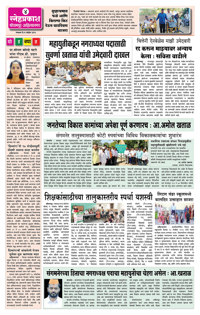 Daily Snehprakash (Marathi) Page: 4 November 18, 2025 Ahilyanagar-Pune-Nashik-shrirampur maharashtra 1 2 3 4 Page 1Page 2Page 3Page 4 × Daily Snehprakash (Marathi) 1-41-421-431-44 << First << 4 >> Last >> Page no 1Page no 2Page no 3Page no 4