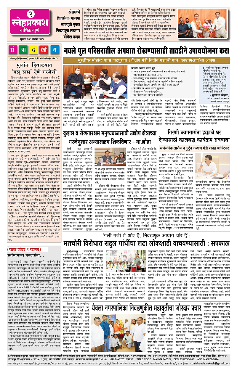 Daily Snehprakash (Marathi) Page: 2 November 21, 2025 Ahilyanagar-Pune-Nashik-shrirampur maharashtra 1 2 3 4 Page 1Page 2Page 3Page 4 × Daily Snehprakash (Marathi) 1-11-121-131-14 << First << 2 >> Last >> Page no 1Page no 2Page no 3Page no 4
