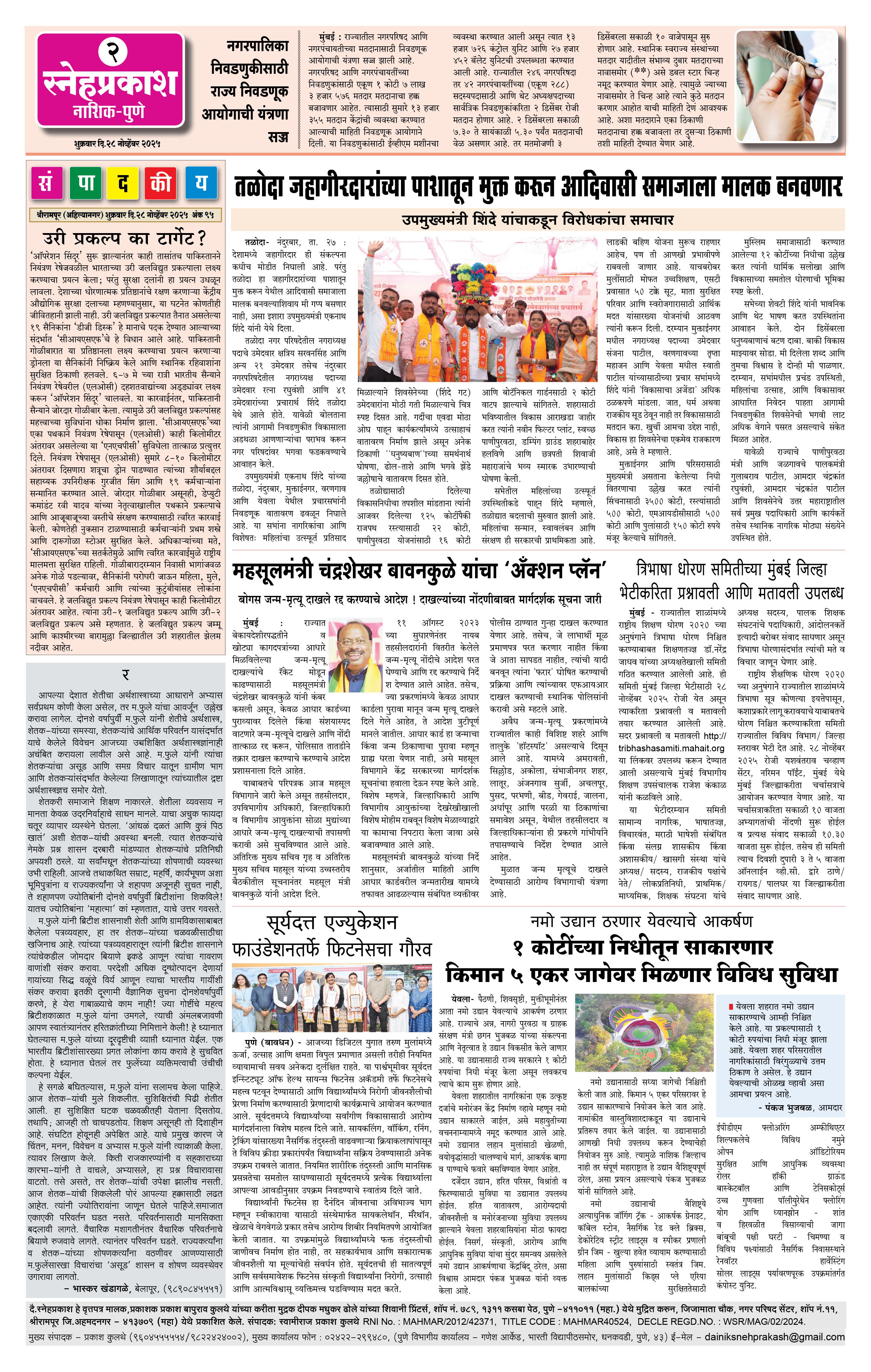Daily Snehprakash (Marathi) Page: 2 November 28, 2025 Ahilyanagar-Pune-Nashik-shrirampur maharashtra 1 2 3 4 Page 1Page 2Page 3Page 4 × Daily Snehprakash (Marathi) 1-41-421-431-44 << First << 2 >> Last >> Page no 1Page no 2Page no 3Page no 4