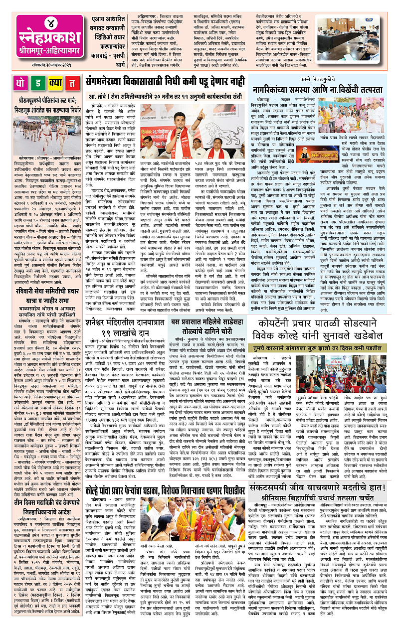 Daily Snehprakash (Marathi) Page: 4 November 30, 2025 Ahilyanagar-Pune-Nashik-shrirampur maharashtra 1 2 3 4 Page 1Page 2Page 3Page 4 × Daily Snehprakash (Marathi) 1-41-4 21-4 31-4 4 << First << 4 >> Last >> Page no 1Page no 2Page no 3Page no 4