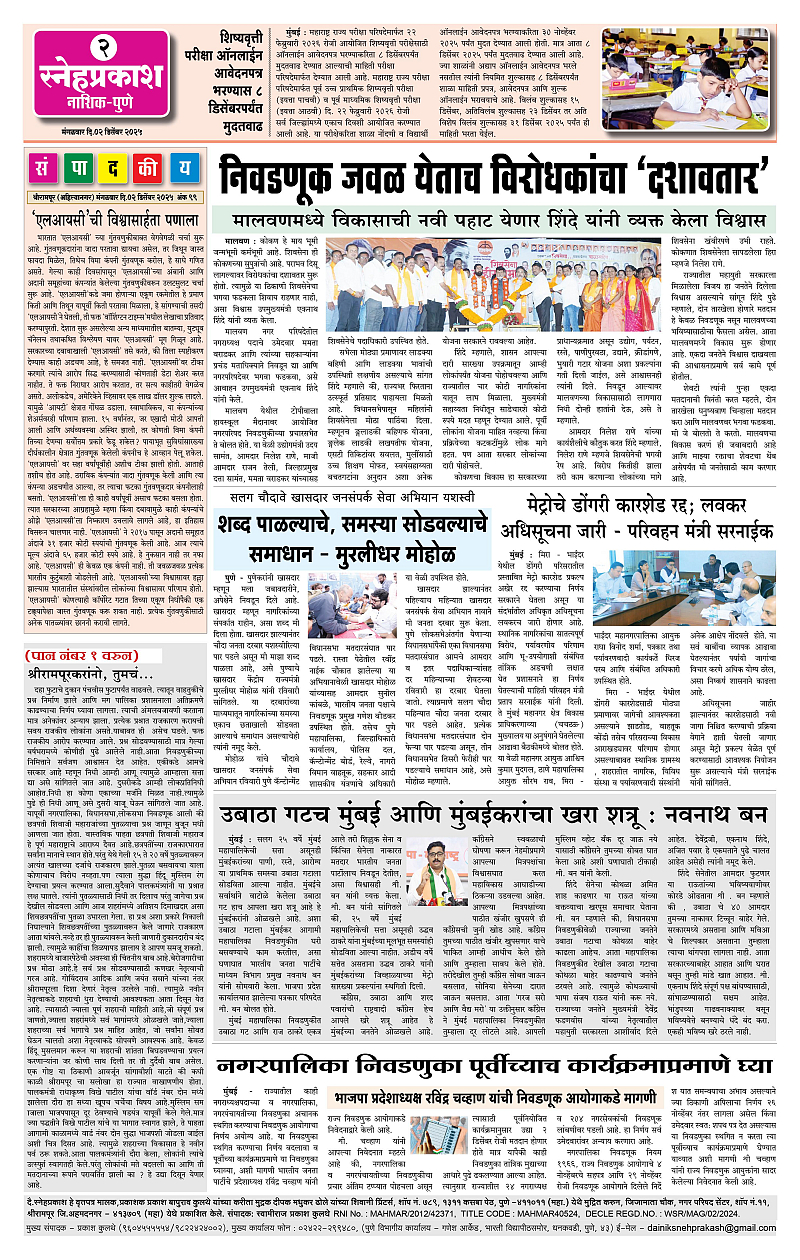 Daily Snehprakash (Marathi) Page: 2 December 02, 2025 ahilyanagar-pune-nashik-shrirampur-maharashtra 1 2 3 4 Page 1Page 2Page 3Page 4 × Daily Snehprakash (Marathi) 4424344 << First << 2 >> Last >> Page no 1Page no 2Page no 3Page no 4