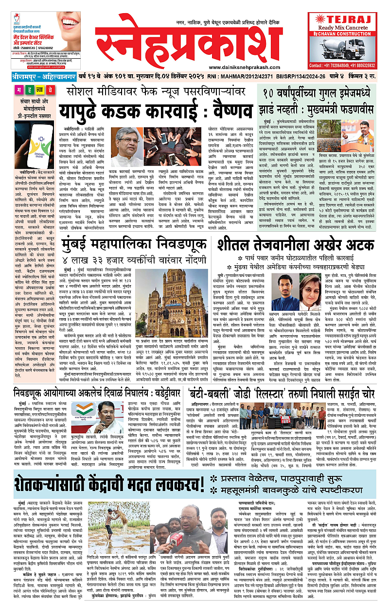 Daily Snehprakash (Marathi) December 04, 2025 Ahilyanagar-Pune-Nashik-shrirampur maharashtra 1 2 3 4 Page 1Page 2Page 3Page 4 × Daily Snehprakash (Marathi) 4424344 << First << 1 >> Last >> Page no 1Page no 2Page no 3Page no 4