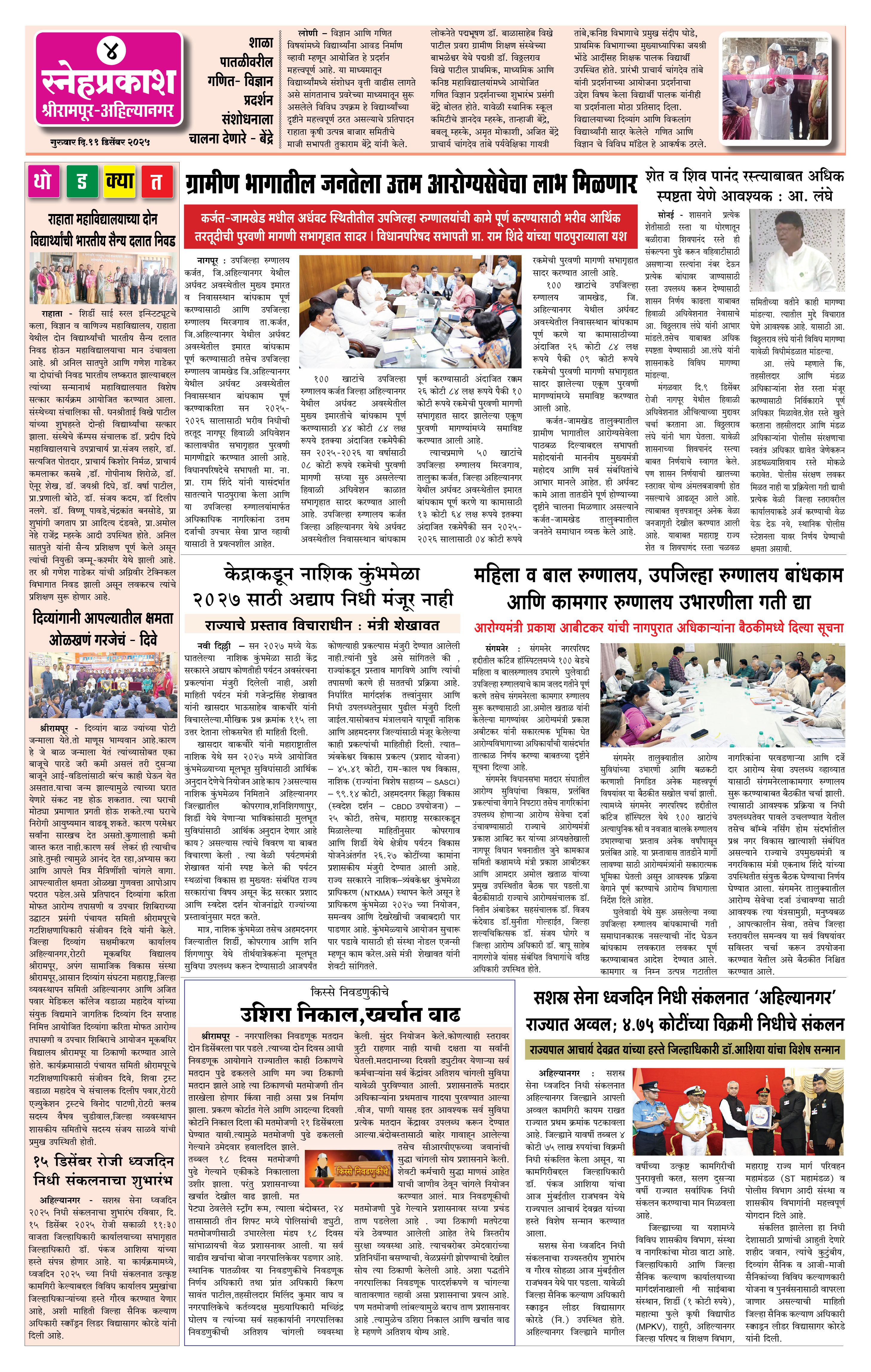 Daily Snehprakash (Marathi) Page: 4 December 11, 2025 Ahilyanagar-Pune-Nashik-shrirampur maharashtra 1 2 3 4 Page 1Page 2Page 3Page 4 × Daily Snehprakash (Marathi) 1121314 << First << 4 >> Last >> Page no 1Page no 2Page no 3Page no 4