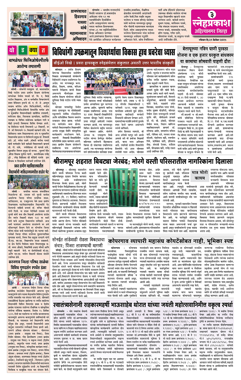 Daily Snehprakash (Marathi) Page: 3 December 21, 2025 Ahilyanagar-Pune-Nashik-shrirampur maharashtra 1 2 3 4 Page 1Page 2Page 3Page 4 × Daily Snehprakash (Marathi) 1-4 c1-4 c21-4 c31-4 c4 << First << 3 >> Last >> Page no 1Page no 2Page no 3Page no 4