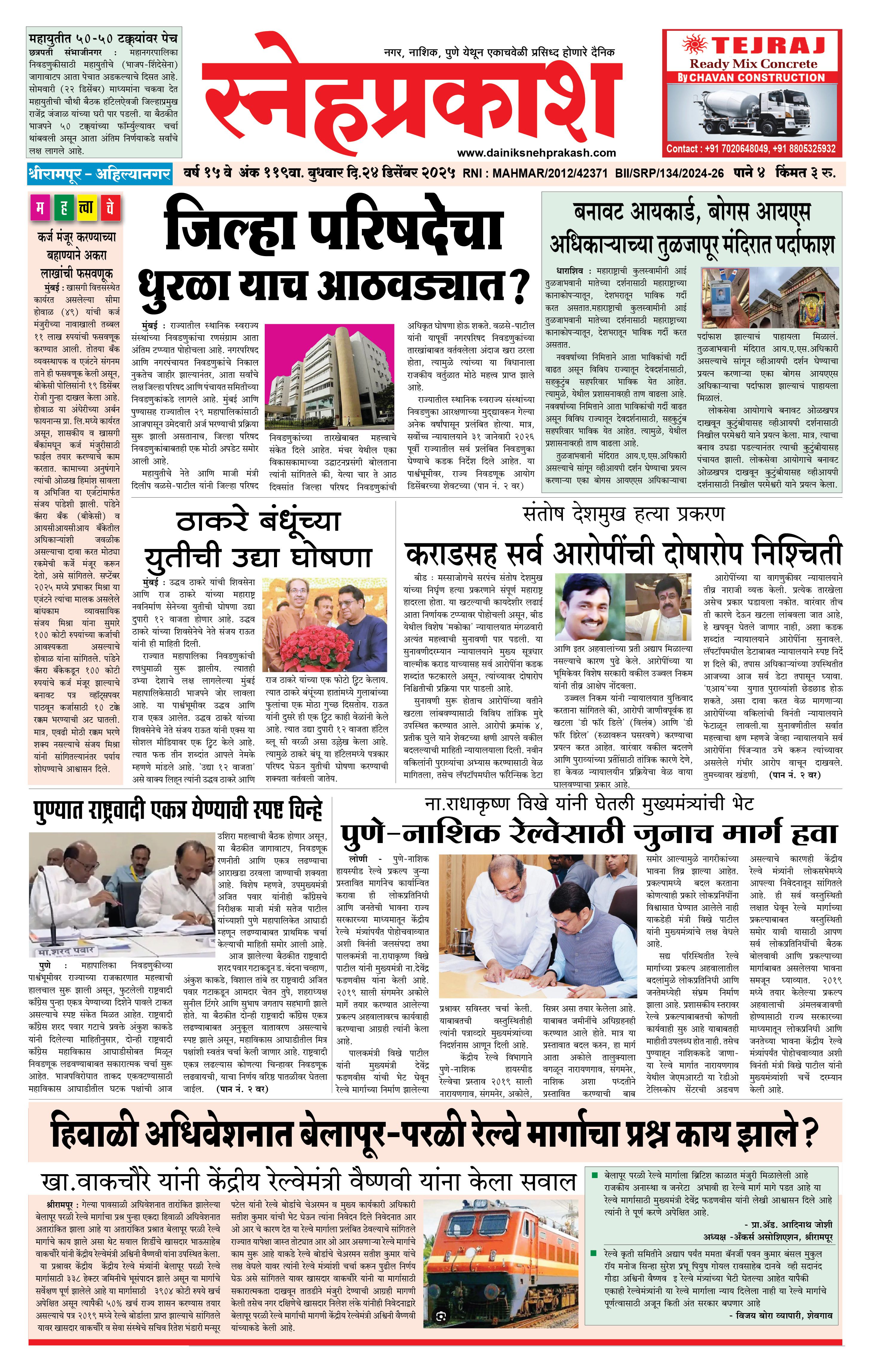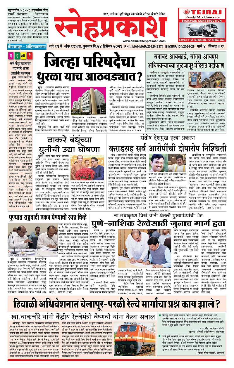 Daily Snehprakash (Marathi) December 24, 2025 Ahilyanagar-Pune-Nashik-shrirampur maharashtra 1 2 3 4 Page 1Page 2Page 3Page 4 × Daily Snehprakash (Marathi) 4424344 << First << 1 >> Last >> Page no 1Page no 2Page no 3Page no 4