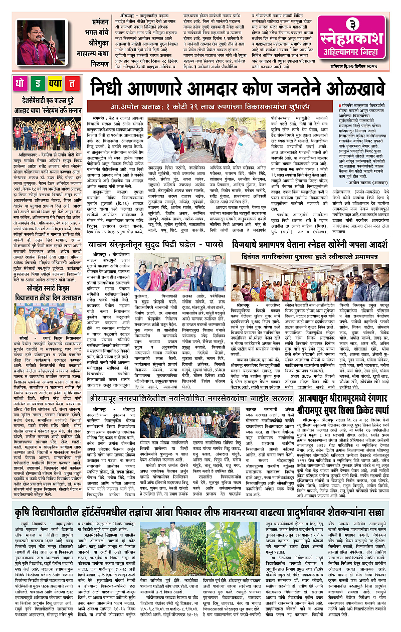 Daily Snehprakash (Marathi) Page: 3 December 27, 2025 Ahilyanagar-Pune-Nashik-shrirampur maharashtra 1 2 3 4 Page 1Page 2Page 3Page 4 × Daily Snehprakash (Marathi) 1121314 << First << 3 >> Last >> Page no 1Page no 2Page no 3Page no 4
