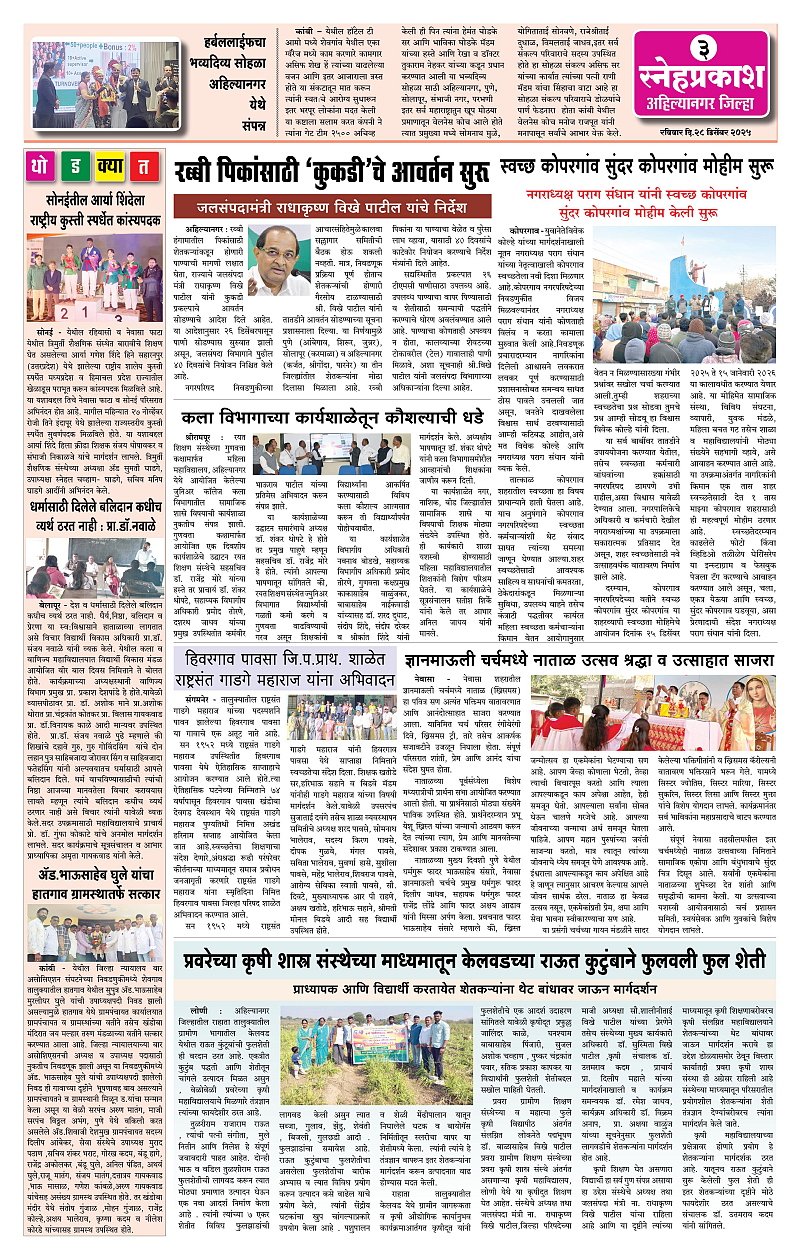 Daily Snehprakash (Marathi) Page: 3 December 28, 2025 Ahilyanagar-Pune-Nashik-shrirampur maharashtra 1 2 3 4 Page 1Page 2Page 3Page 4 × Daily Snehprakash (Marathi) 1-41-421-431-44 << First << 3 >> Last >> Page no 1Page no 2Page no 3Page no 4