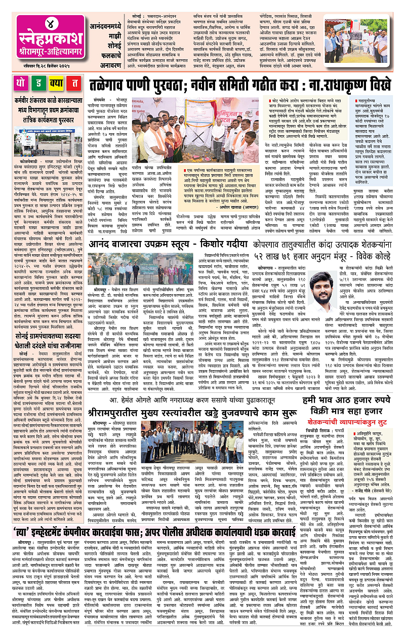 Daily Snehprakash (Marathi) Page: 4 December 28, 2025 Ahilyanagar-Pune-Nashik-shrirampur maharashtra 1 2 3 4 Page 1Page 2Page 3Page 4 × Daily Snehprakash (Marathi) 1-41-421-431-44 << First << 4 >> Last >> Page no 1Page no 2Page no 3Page no 4