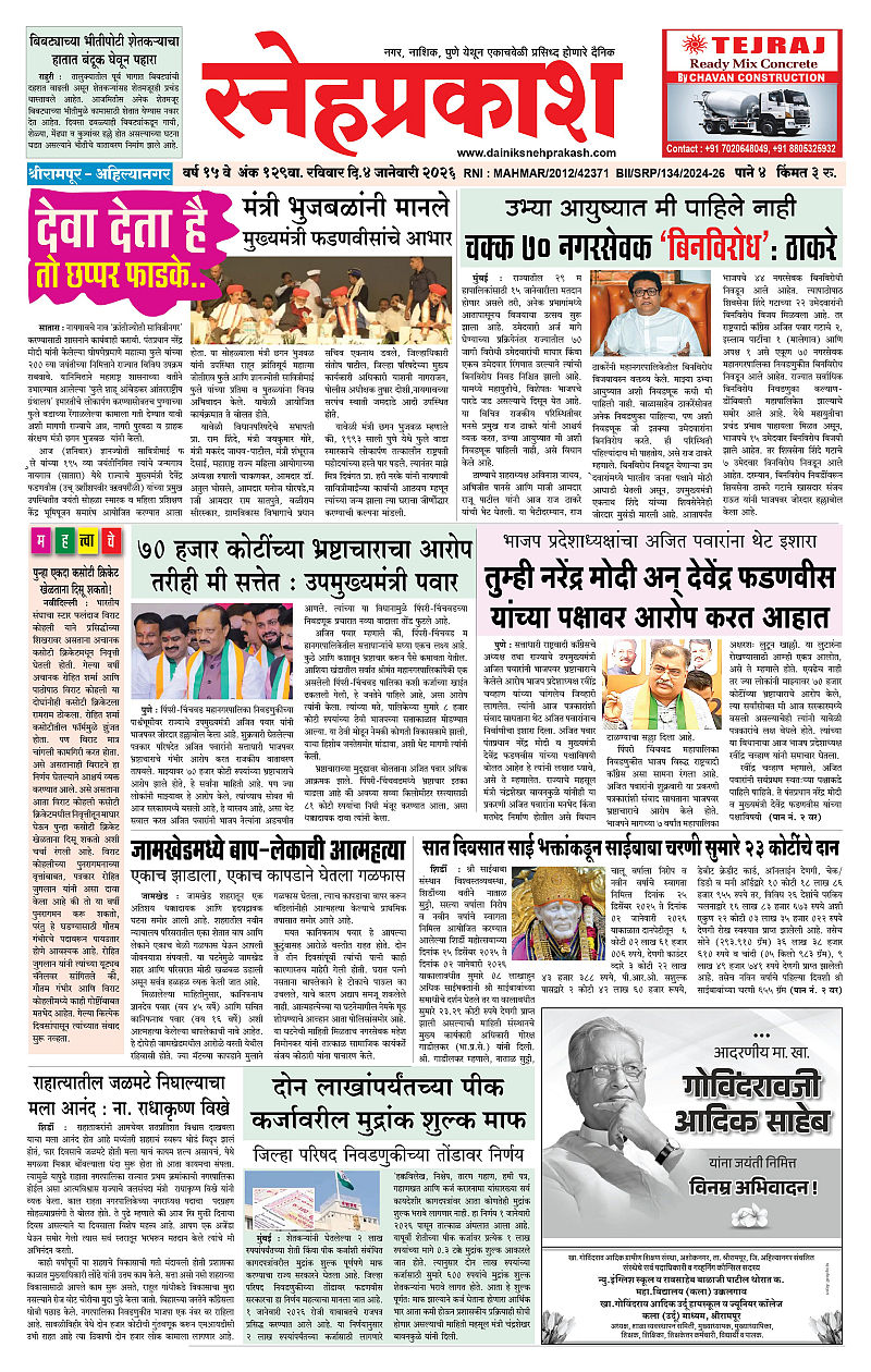 Daily Snehprakash (Marathi) January 04, 2026 Ahilyanagar-Pune-Nashik-shrirampur maharashtra 1 2 3 4 Page 1Page 2Page 3Page 4 × Daily Snehprakash (Marathi) 3323334 << First << 1 >> Last >> Page no 1Page no 2Page no 3Page no 4