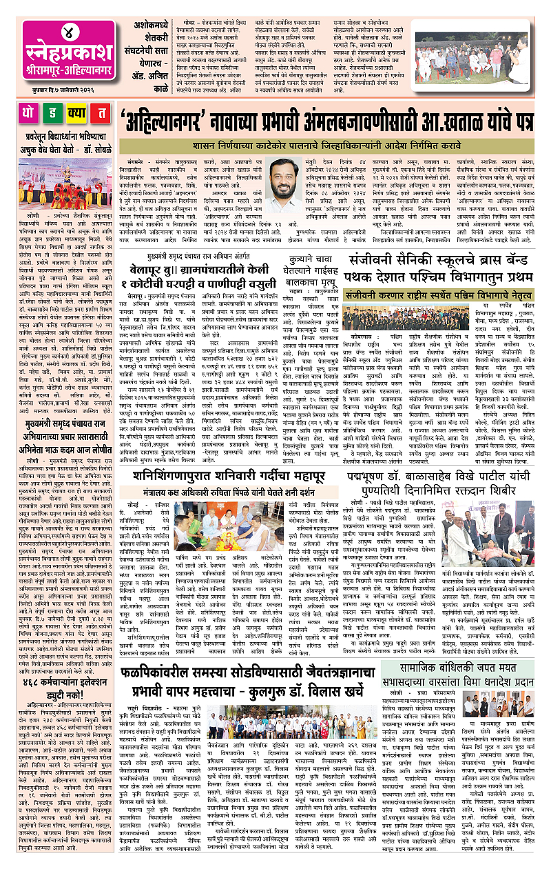 Daily Snehprakash (Marathi) Page: 4 January 07, 2026 Ahilyanagar-Pune-Nashik-shrirampur maharashtra 1 2 3 4 Page 1Page 2Page 3Page 4 × Daily Snehprakash (Marathi) 1-41-421-431-44 << First << 4 >> Last >> Page no 1Page no 2Page no 3Page no 4