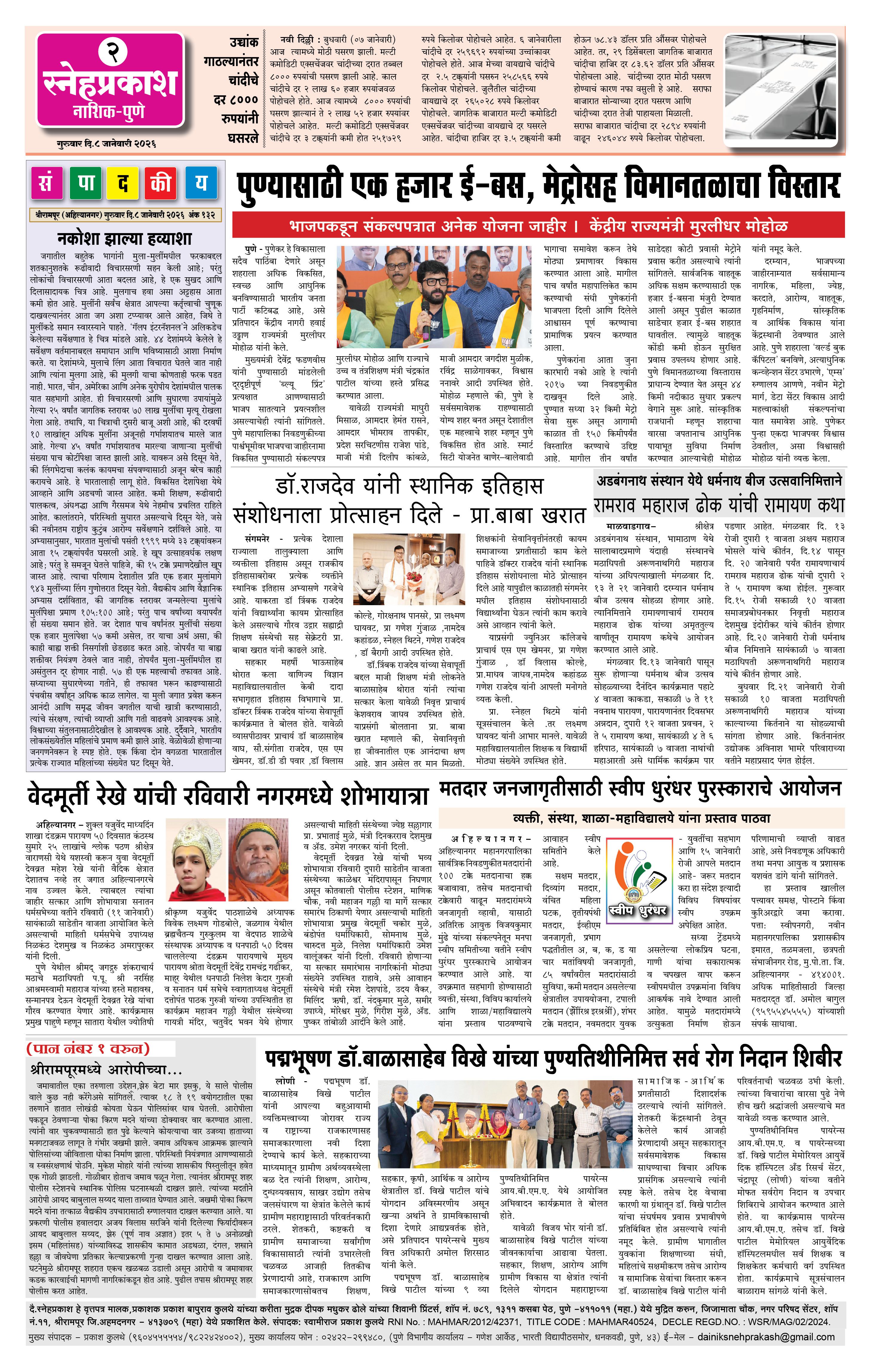 Daily Snehprakash (Marathi) Page: 2 January 08, 2026 ahilyanagar-pune-nashik-shrirampur-maharashtra 1 2 3 4 Page 1Page 2Page 3Page 4 × Daily Snehprakash (Marathi) 1-41-421-431-44 << First << 2 >> Last >> Page no 1Page no 2Page no 3Page no 4