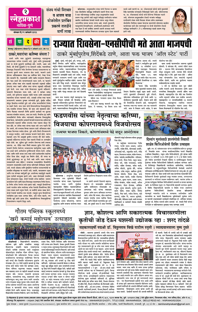 Daily Snehprakash (Marathi) Page: 2 January 19, 2026 Ahilyanagar-Pune-Nashik-shrirampur maharashtra 1 2 3 4 Page 1Page 2Page 3Page 4 × Daily Snehprakash (Marathi) 19 Jan- SNEH PRAKASH (1-4) Colour19 Jan- SNEH PRAKASH (1-4) Colour219 Jan- SNEH PRAKASH (1-4) Colour319 Jan- SNEH PRAKASH (1-4) Colour4 << First << 2 >> Last >> Page no 1Page no 2Page no 3Page no 4