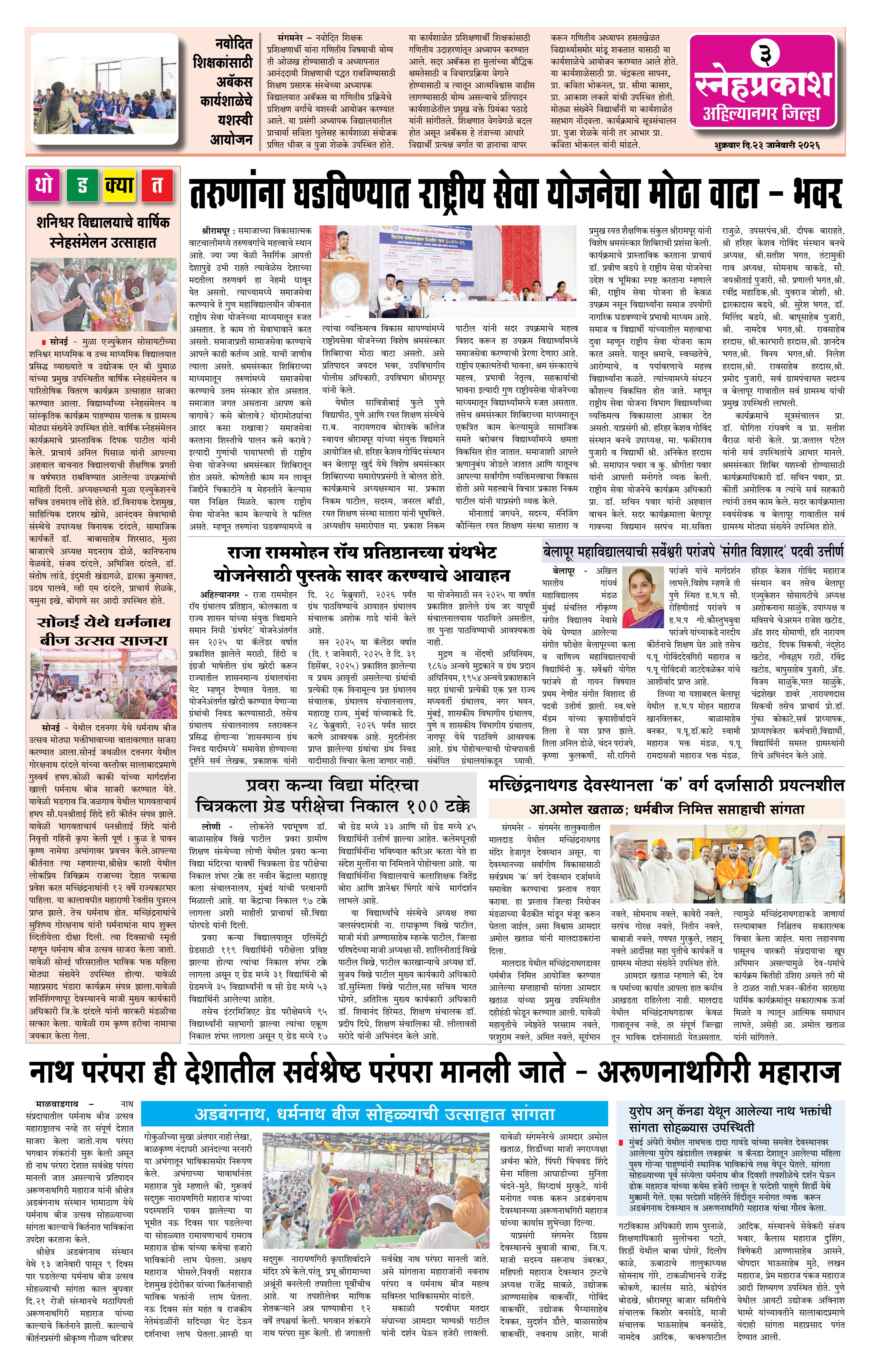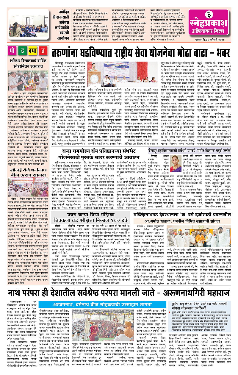 Daily Snehprakash (Marathi) Page: 3 January 23, 2026 ahilyanagar-pune-nashik-shrirampur-maharashtra 1 2 3 4 Page 1Page 2Page 3Page 4 × Daily Snehprakash (Marathi) 1-41-421-431-44 << First << 3 >> Last >> Page no 1Page no 2Page no 3Page no 4
