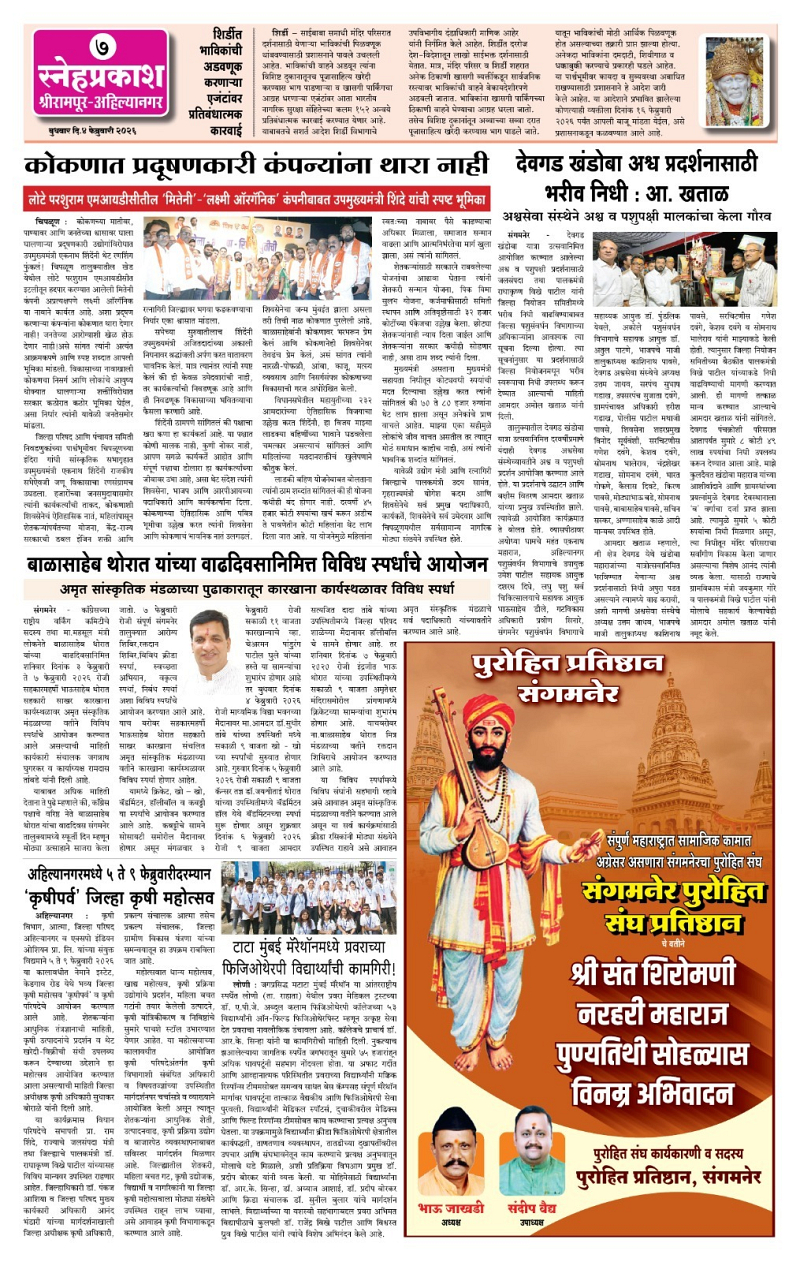 Daily Snehprakash (Marathi) Page: 7 February 04, 2026 Daily Snehprakash (Marathi) 5 6 7 8 Page 1Page 2Page 3Page 4Page 5Page 6Page 7Page 8 × Daily Snehprakash (Marathi) 12345678 << First << 7 >> Last >> Page no 1Page no 2Page no 3Page no 4Page no 5Page no 6Page no 7Page no 8