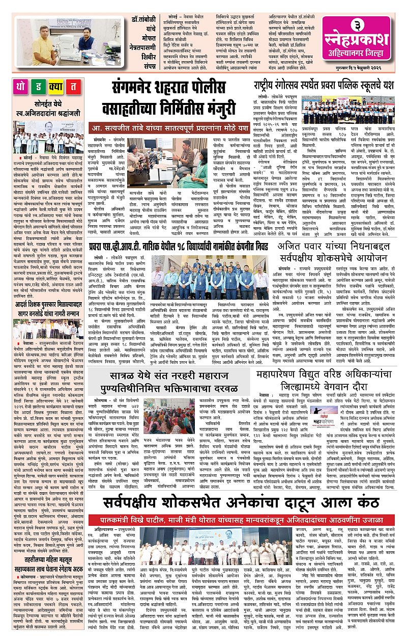 Daily Snehprakash (Marathi) Page: 3 February 05, 2026 Ahilyanagar-Pune-Nashik-shrirampur maharashtra 1 2 3 4 Page 1Page 2Page 3Page 4 × Daily Snehprakash (Marathi) 1-41-423331-44 << First << 3 >> Last >> Page no 1Page no 2Page no 3Page no 4