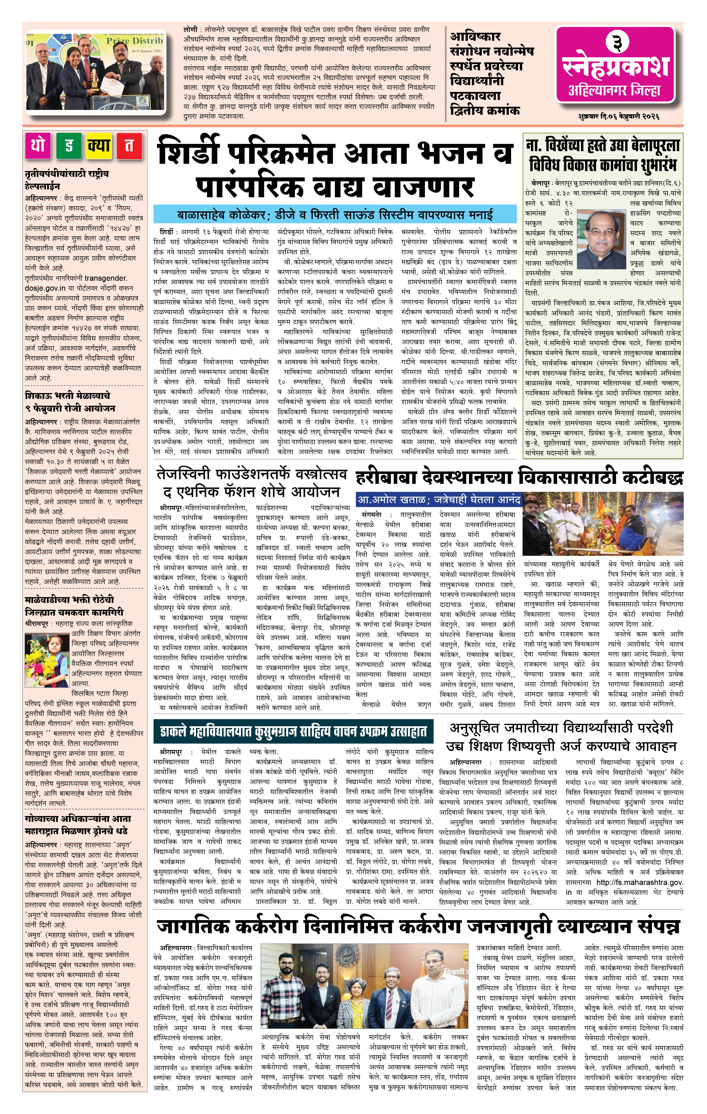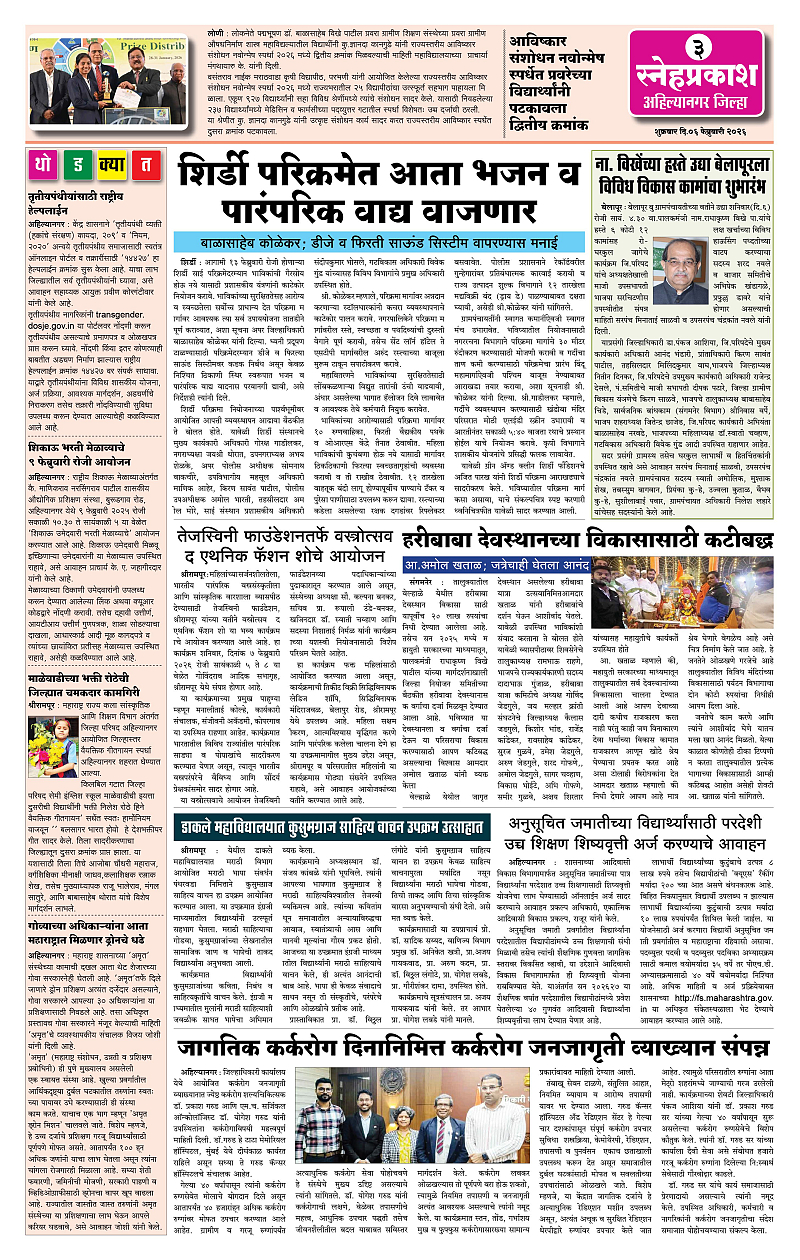 Daily Snehprakash (Marathi) Page: 3 February 06, 2026 Ahilyanagar-Pune-Nashik-shrirampur maharashtra 1 2 3 4 Page 1Page 2Page 3Page 4 × Daily Snehprakash (Marathi) 12-422-432-44 << First << 3 >> Last >> Page no 1Page no 2Page no 3Page no 4