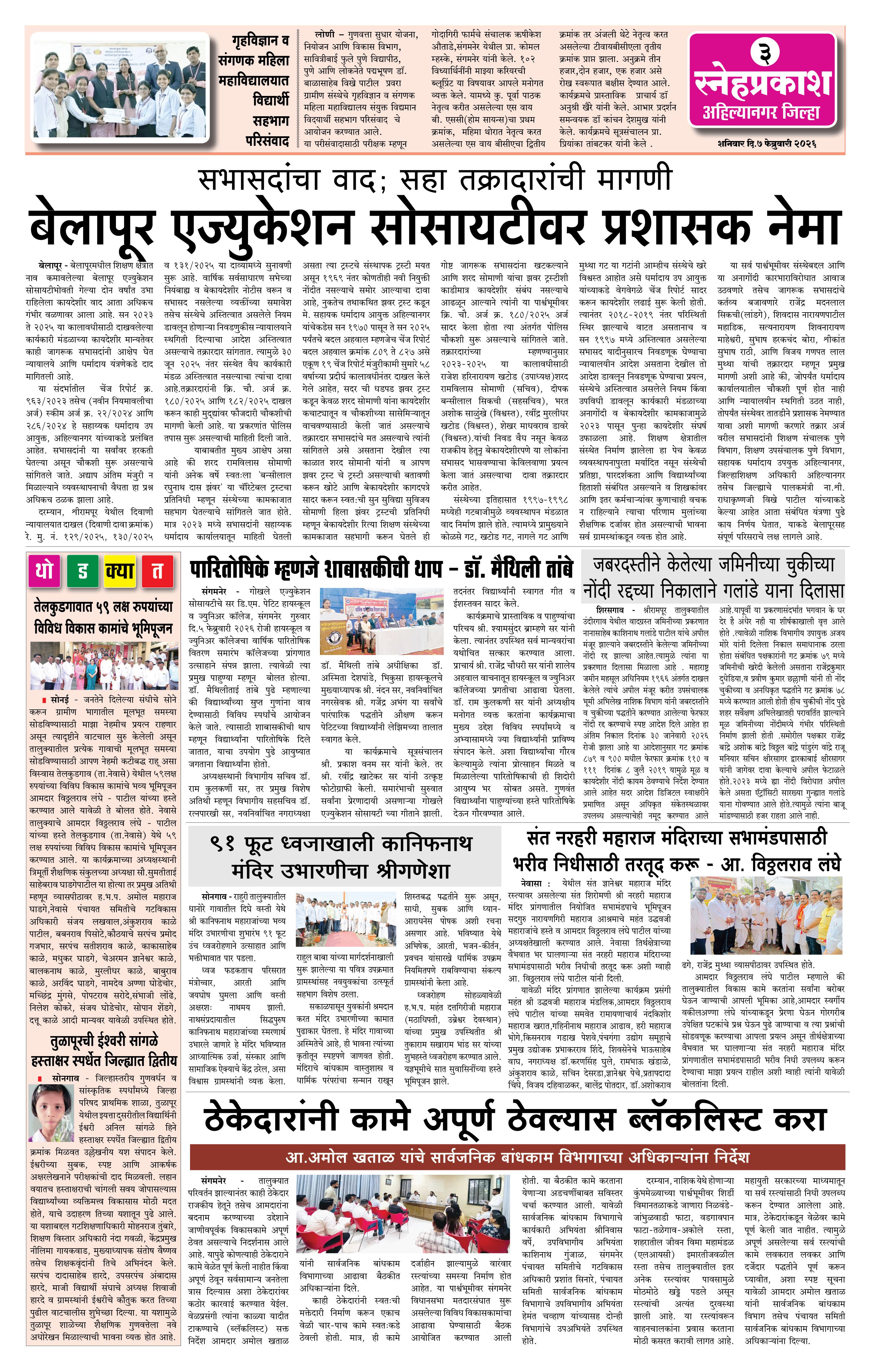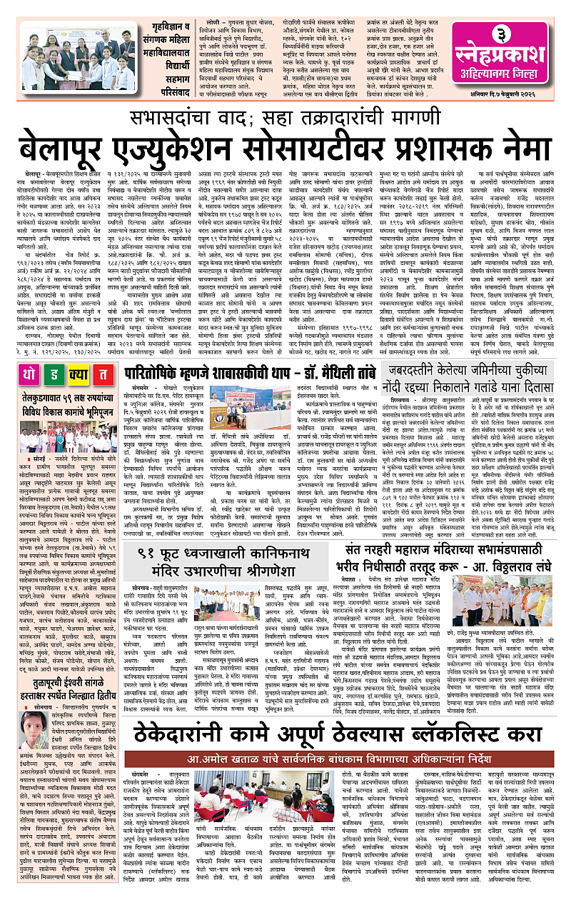 Daily Snehprakash (Marathi) Page: 3 February 07, 2026 Ahilyanagar-Pune-Nashik-shrirampur maharashtra 1 2 3 4 Page 1Page 2Page 3Page 4 × Daily Snehprakash (Marathi) 1121314 << First << 3 >> Last >> Page no 1Page no 2Page no 3Page no 4