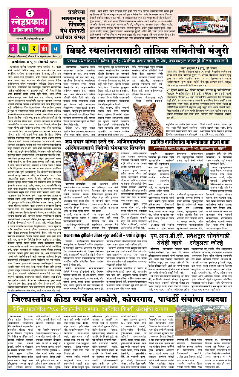 Daily Snehprakash (Marathi) Page: 2 February 09, 2026 Ahilyanagar-Pune-Nashik-shrirampur maharashtra 1 2 3 4 Page 1Page 2Page 3Page 4 × Daily Snehprakash (Marathi) 1234 << First << 2 >> Last >> Page no 1Page no 2Page no 3Page no 4