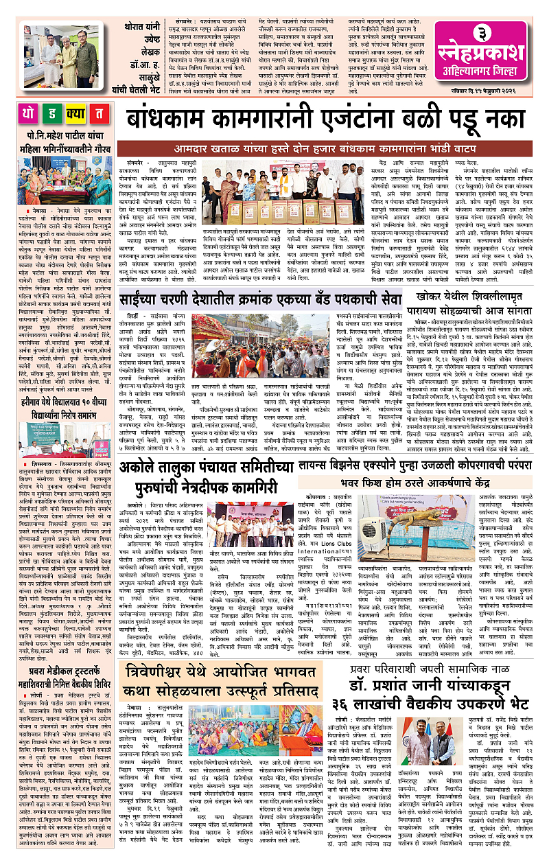 Daily Snehprakash (Marathi) Page: 3 February 15, 2026 Ahilyanagar-Pune-Nashik-shrirampur maharashtra 1 2 3 4 Page 1Page 2Page 3Page 4 × Daily Snehprakash (Marathi) 1121314 << First << 3 >> Last >> Page no 1Page no 2Page no 3Page no 4