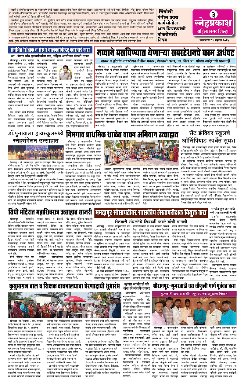 Daily Snehprakash (Marathi) Page: 3 February 17, 2026 Ahilyanagar-Pune-Nashik-shrirampur maharashtra 1 2 3 4 Page 1Page 2Page 3Page 4 × Daily Snehprakash (Marathi) 122223 << First << 3 >> Last >> Page no 1Page no 2Page no 3Page no 4