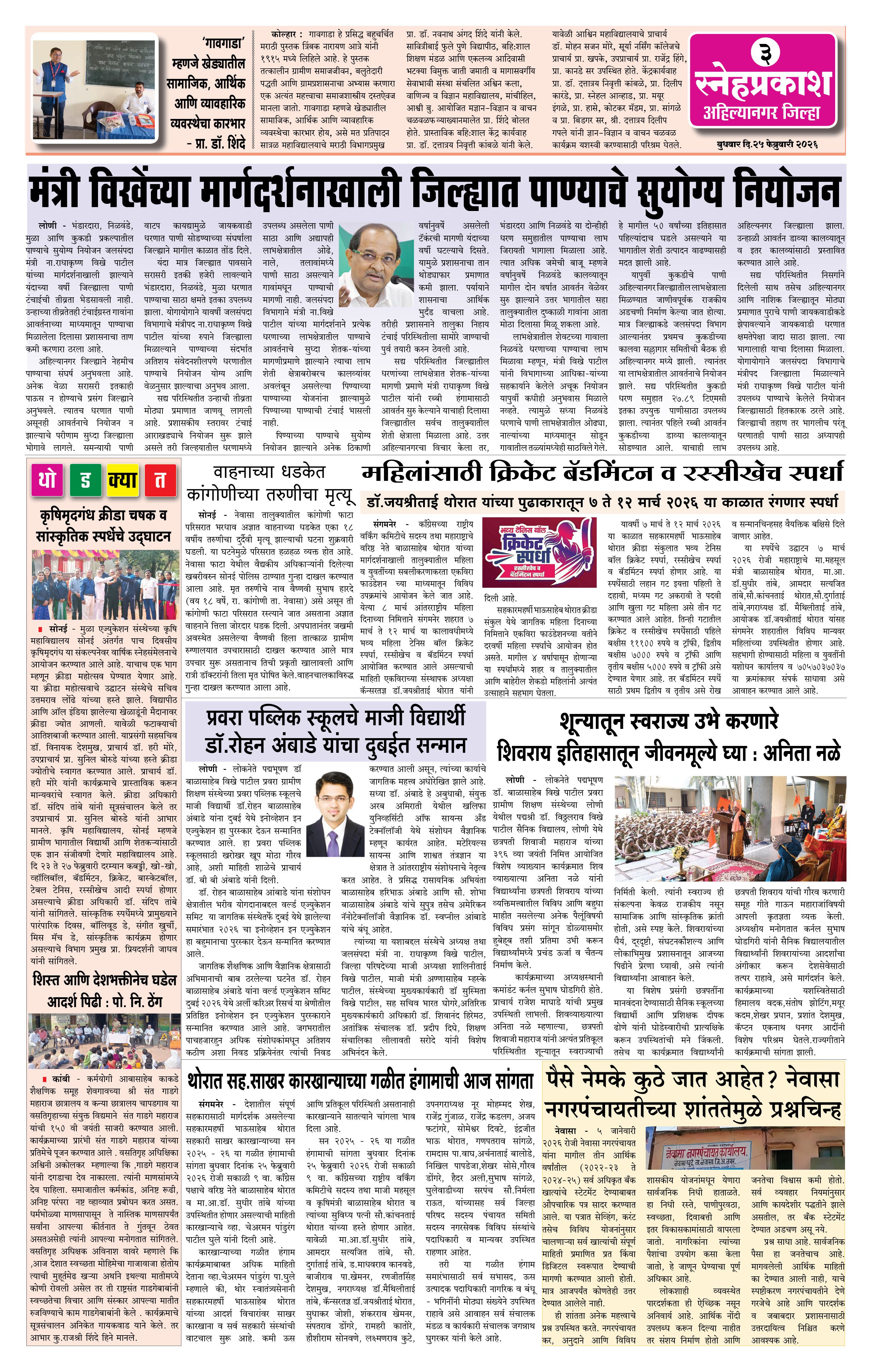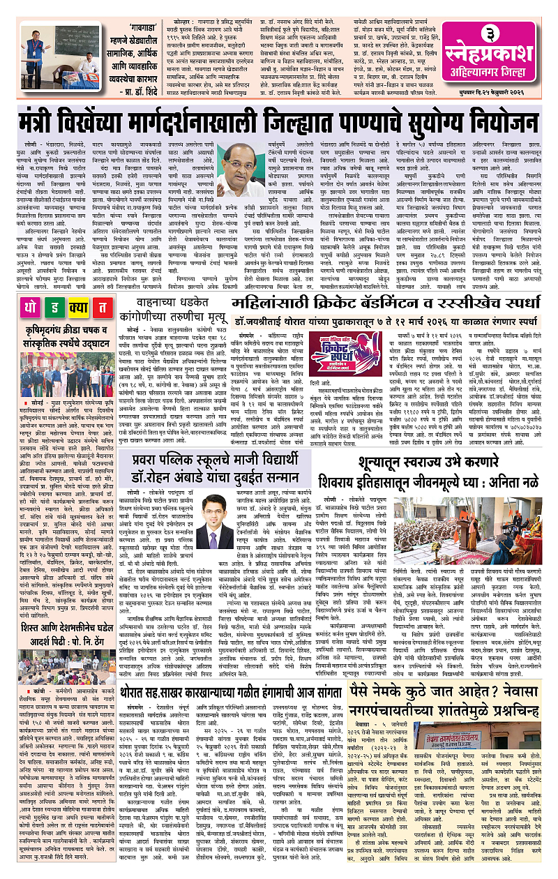 Daily Snehprakash (Marathi) Page: 3 February 25, 2026 Ahilyanagar-Pune-Nashik-shrirampur maharashtra 1 2 3 4 Page 1Page 2Page 3Page 4 × Daily Snehprakash (Marathi) 1234 << First << 3 >> Last >> Page no 1Page no 2Page no 3Page no 4