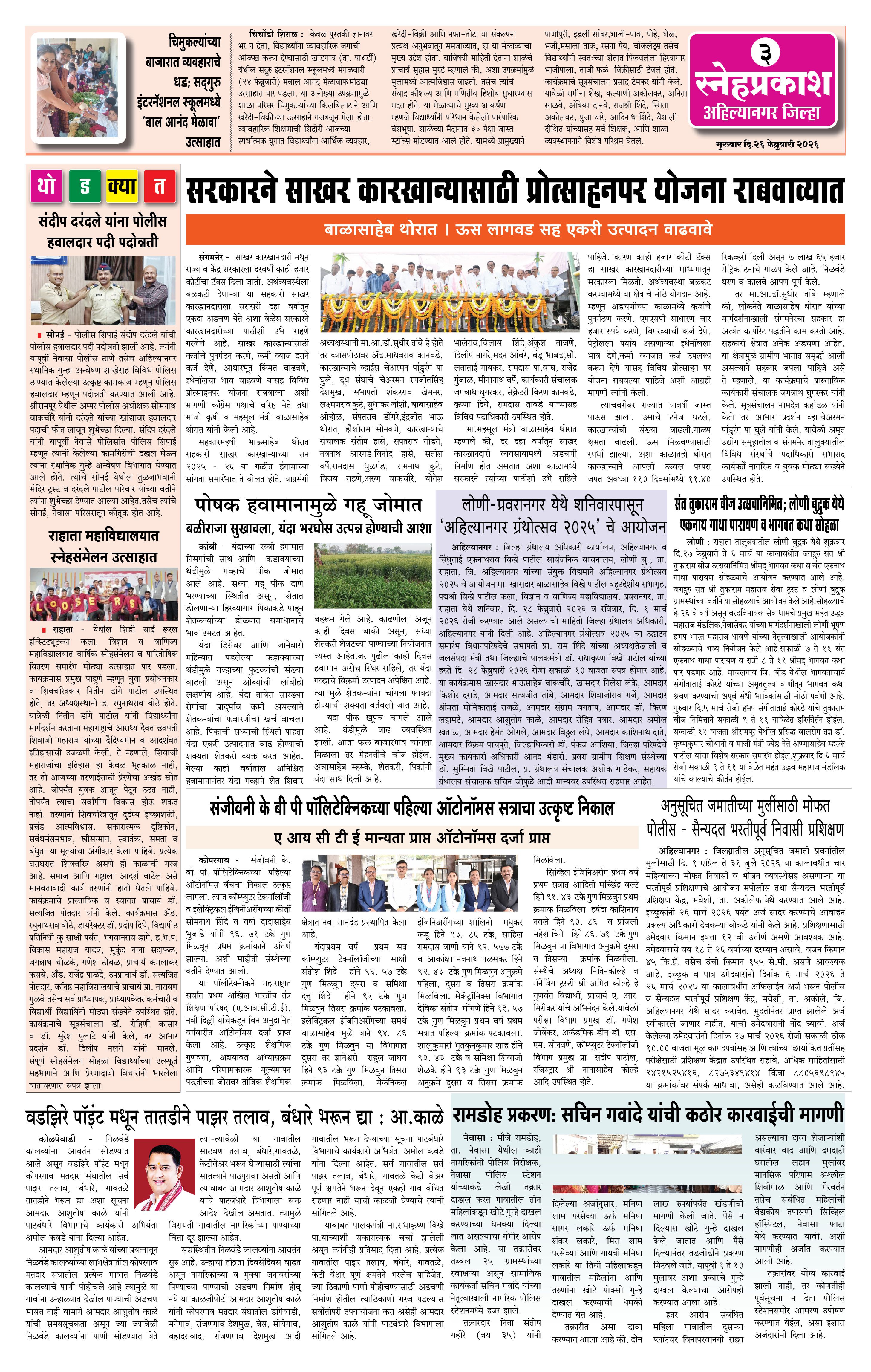 Daily Snehprakash (Marathi) Page: 3 February 26, 2026 Ahilyanagar-Pune-Nashik-shrirampur maharashtra 1 2 3 4 Page 1Page 2Page 3Page 4 × Daily Snehprakash (Marathi) 12-42-422-43 << First << 3 >> Last >> Page no 1Page no 2Page no 3Page no 4