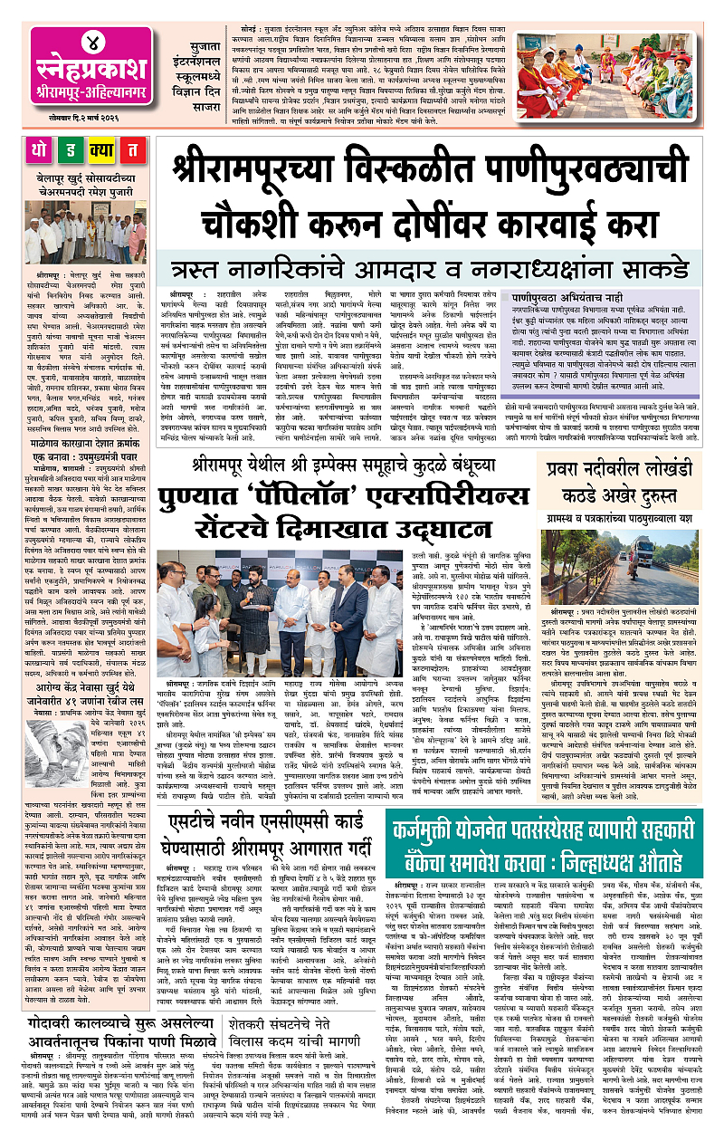 Daily Snehprakash (Marathi) Page: 4 March 02, 2026 Ahilyanagar-Pune-Nashik-shrirampur maharashtra 1 2 3 4 Page 1Page 2Page 3Page 4 × Daily Snehprakash (Marathi) 1-41-421-431-44 << First << 4 >> Last >> Page no 1Page no 2Page no 3Page no 4