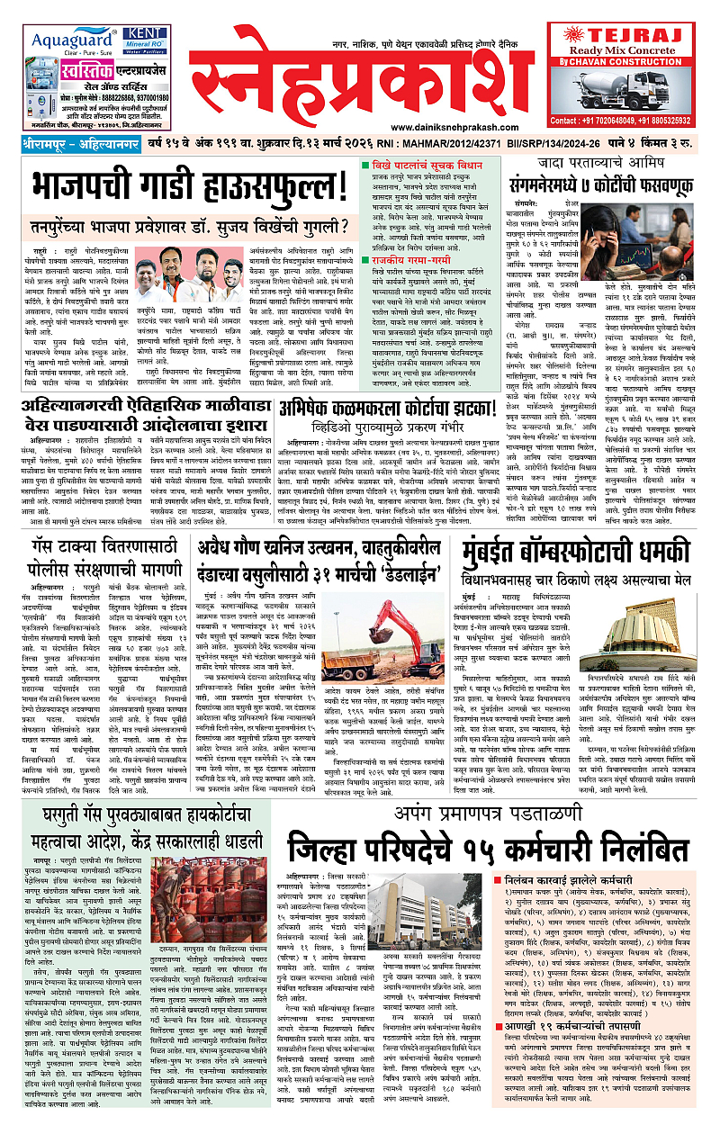 Daily Snehprakash (Marathi) March 13, 2026 Ahilyanagar-Pune-Nashik-shrirampur maharashtra 1 2 3 4 Page 1Page 2Page 3Page 4 × Daily Snehprakash (Marathi) 1-41-421-431-44 << First << 1 >> Last >> Page no 1Page no 2Page no 3Page no 4