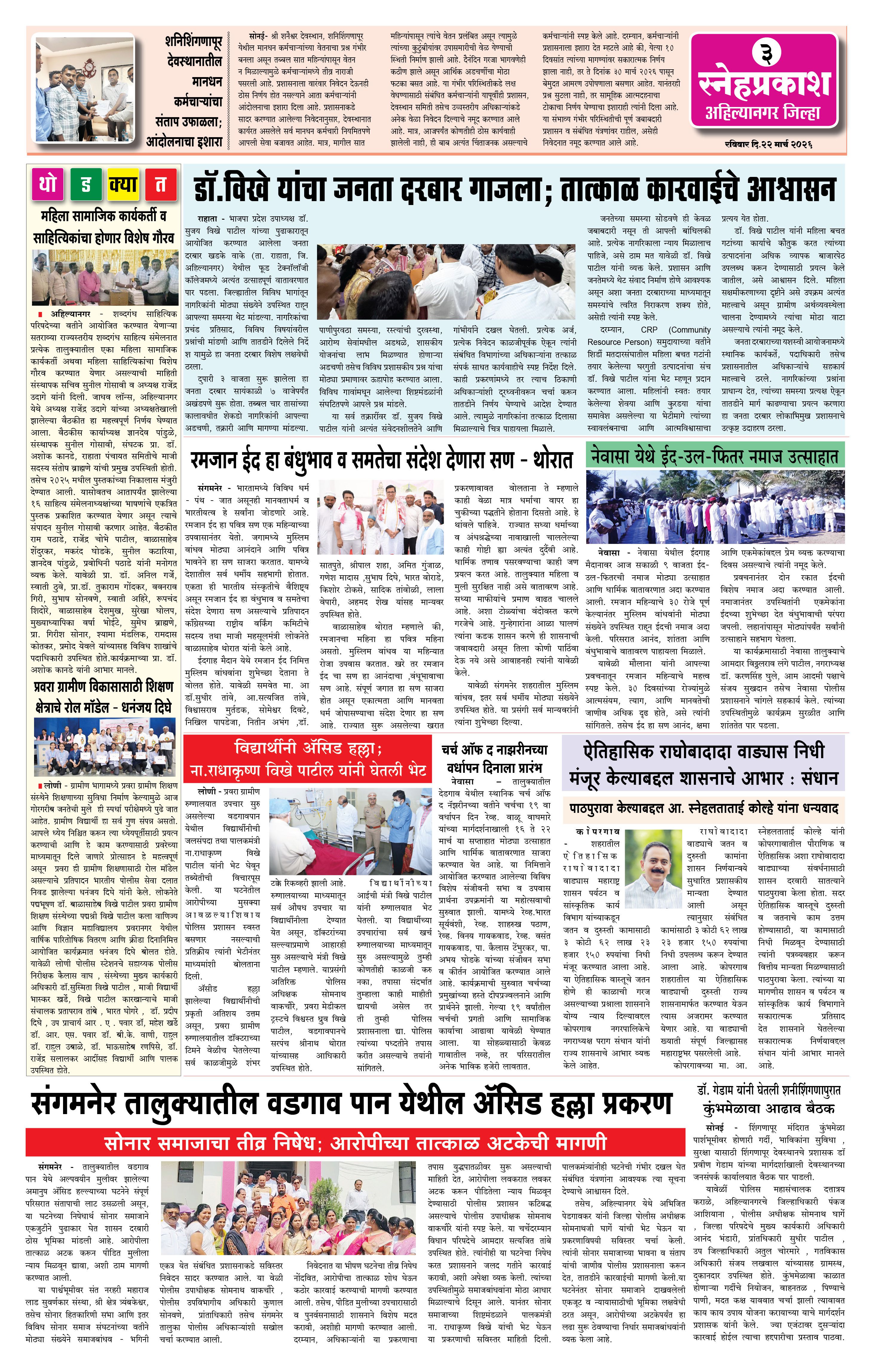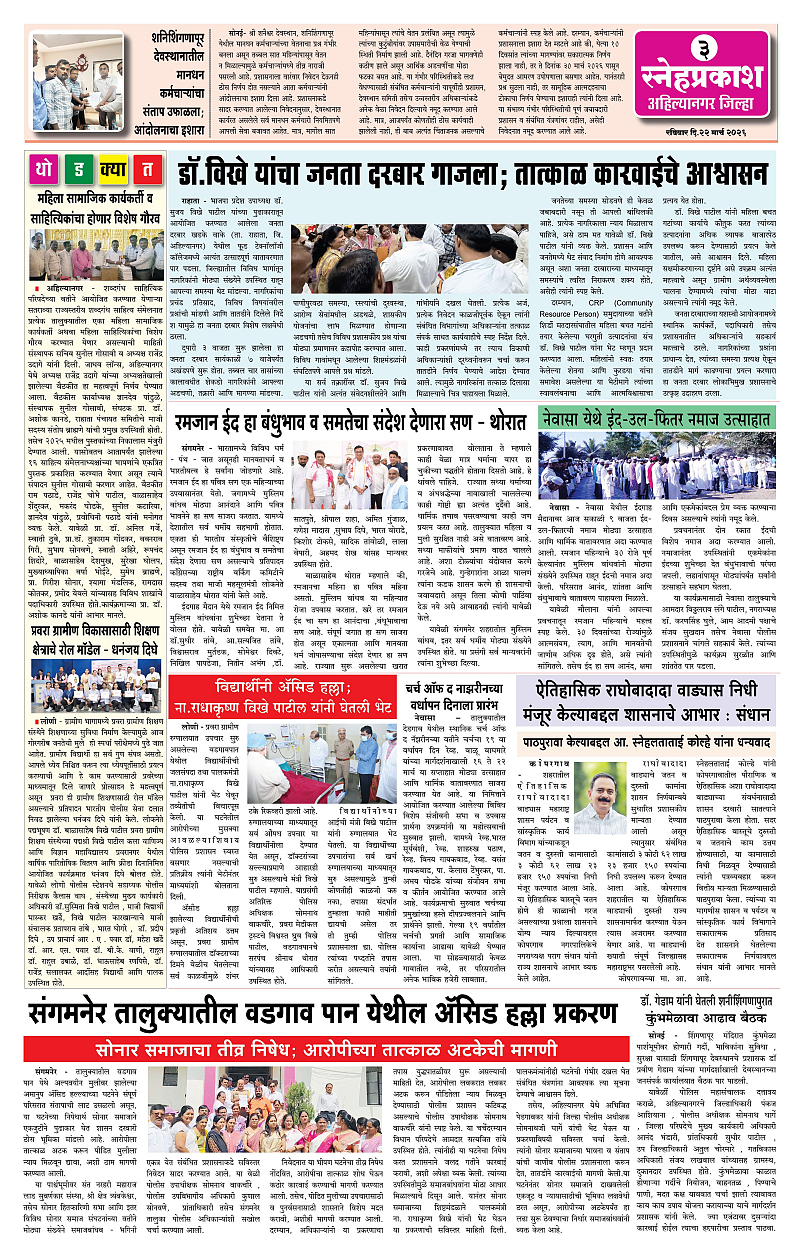 Daily Snehprakash (Marathi) Page: 3 March 22, 2026 Ahilyanagar-Pune-Nashik-shrirampur maharashtra 1 2 3 4 Page 1Page 2Page 3Page 4 × Daily Snehprakash (Marathi) 1-41-421-431-44 << First << 3 >> Last >> Page no 1Page no 2Page no 3Page no 4
